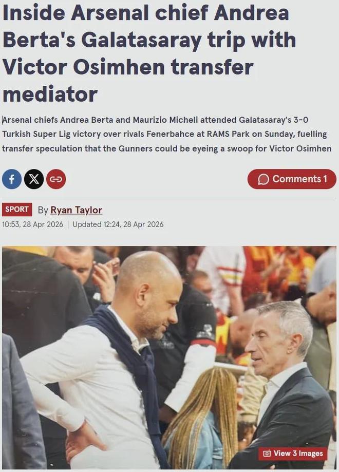 看来土耳其记者报道的贝尔塔去了比赛现场是真的,但观察奥斯梅恩的说法是猜的。